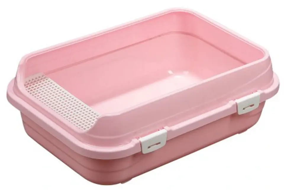 Open litter box with high sides for big cats.