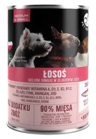 PETREPUBLIC Pieces with salmon in sauce can for dogs 400g