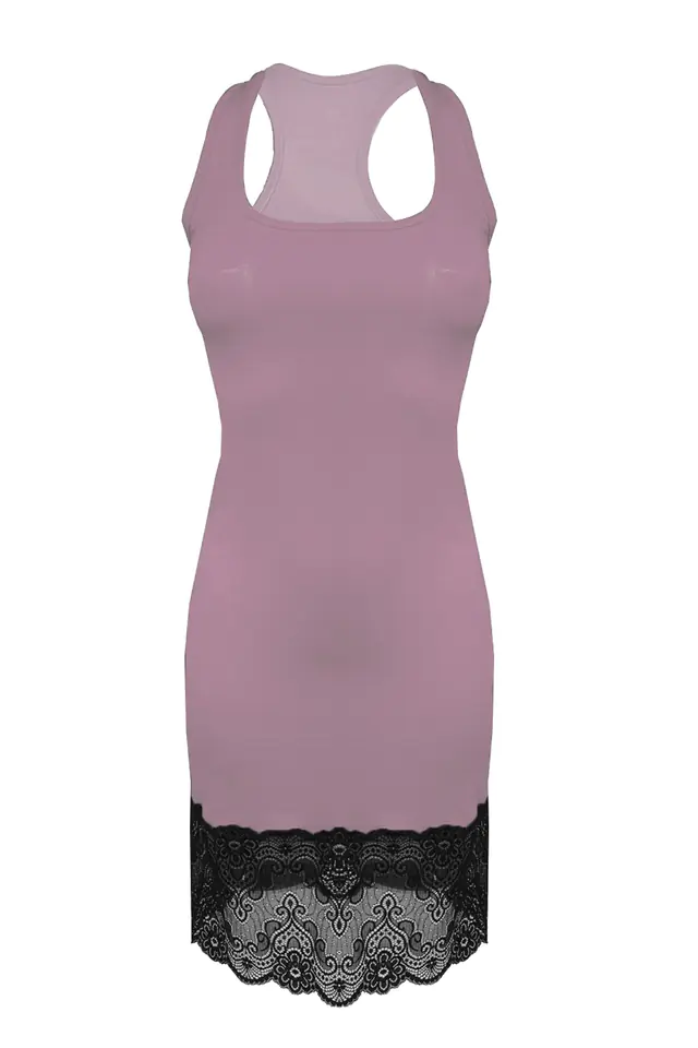 HALKA TYPU BOKSERKA USZYTA Z DELIKATNEJ WISKOZOWEJ TKANINY IDEALNIE DOPASOWUJE SIĘ DO KSZTAŁTÓW CIAŁA DÓŁ OZDOBIONY DELIKATNĄ KORONKĄ