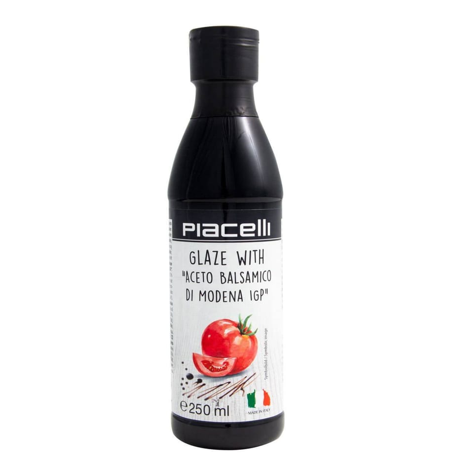 Delicate glaze with balsamic vinegar from Modena "Aceto Balsamico di Modena PGI" This PIACELLI glaze has a thick texture and a very pleasant taste. It can be used to improve the taste of appetizers, grilled meats or fish, salads and cheeses.