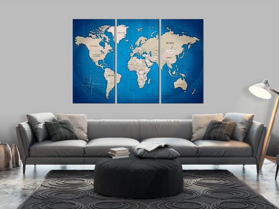 Picture on a traffic jam "Painting on a cork - Inky journey [Cork map]" is much lighter than traditional wall decorations. Thanks to this, decorative cork boards can hang anywhere in your apartment or office. Canvas with a print is applied to the cork plate. Thanks to this, the print is characterized by expressive colors and reflects the smallest details. Pin pins or notes to it and create your own individual pattern on your wall!