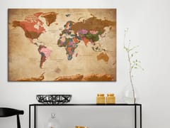 Picture on a traffic jam "Painting on a cork - World Map: Brown elegance [Cork map]" is much lighter than traditional wall decorations. Thanks to this, decorative cork boards can hang anywhere in your apartment or office. Canvas with a print is applied to the cork plate. Thanks to this, the print is characterized by expressive colors and reflects the smallest details. Pin pins or notes to it and create your own individual pattern on your wall!