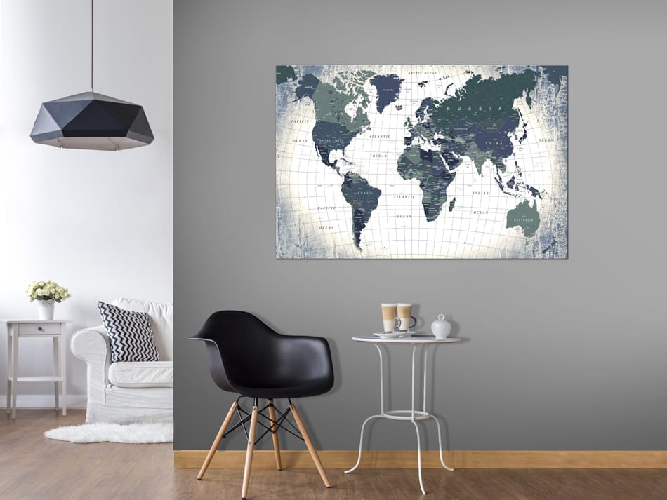 Picture on a traffic jam "Painting on cork - The structure of the world [Cork map]" is much lighter than traditional wall decorations. Thanks to this, decorative cork boards can hang anywhere in your apartment or office. Canvas with a print is applied to the cork plate. Thanks to this, the print is characterized by expressive colors and reflects the smallest details. Pin pins or notes to it and create your own individual pattern on your wall!