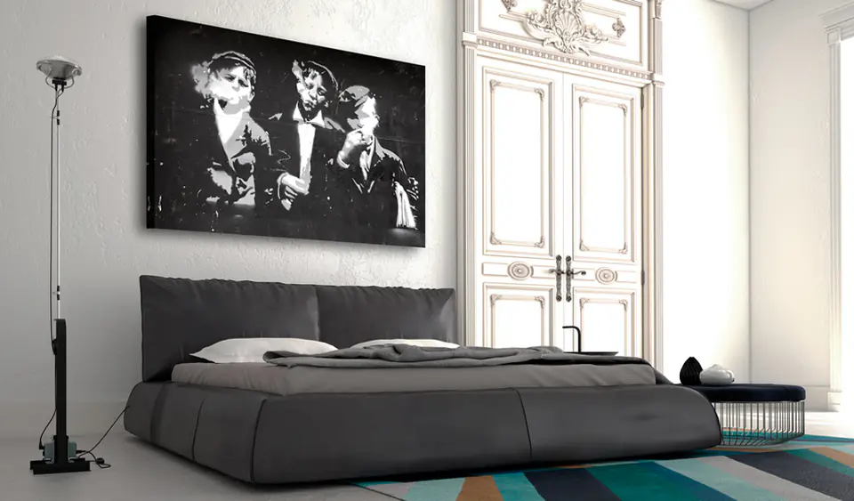 Image "Picture - Street Goodfellas (Retro Style)" is printed on a special non-woven canvas perfectly reproducing colors. The canvas is stretched on a light but stable frame made of environmentally friendly materials. High-end decoration is provided by high-quality printing, thanks to which colors are expressive and details are perfectly reproduced, regardless of the image format.