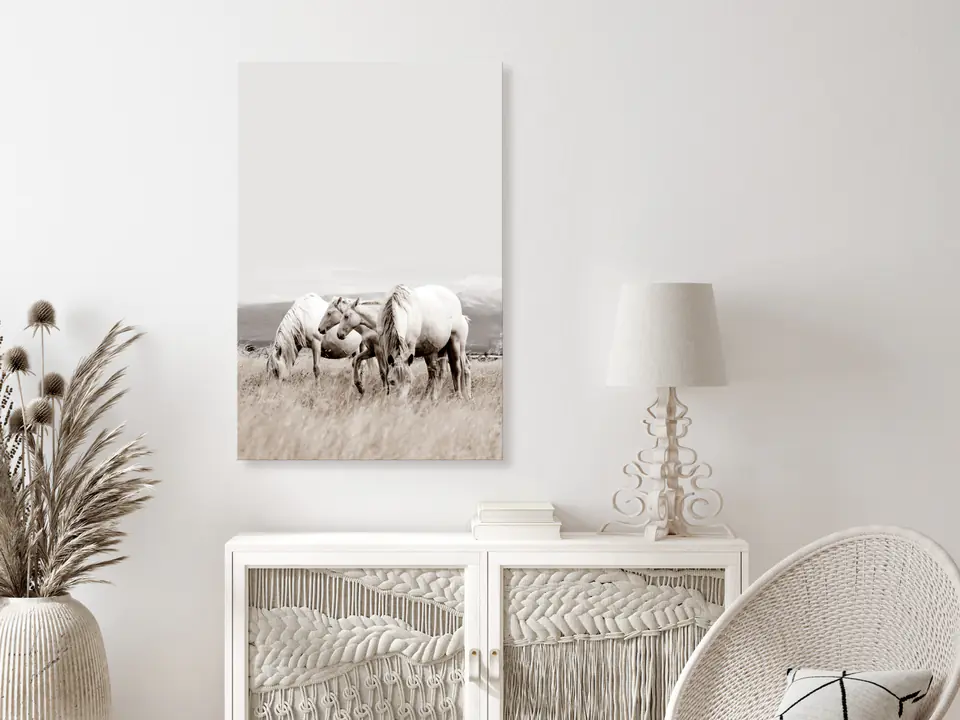 Image "Picture - White horses (1-piece) vertical" is printed on a special fleece canvas that perfectly reproduces colors. The canvas is stretched on a light but stable frame made of environmentally friendly materials. High-end decoration is provided by high-quality printing, thanks to which colors are expressive and details are perfectly reproduced, regardless of the image format.