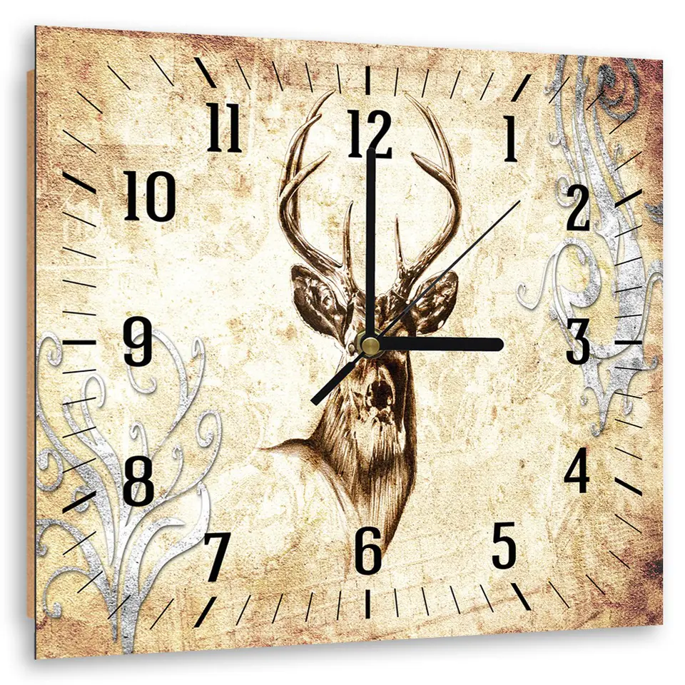 Picture with clock, Deer in sepia Size 40x40