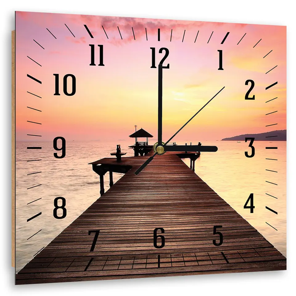 Picture with clock, Pier and setting sun Size 40x40
