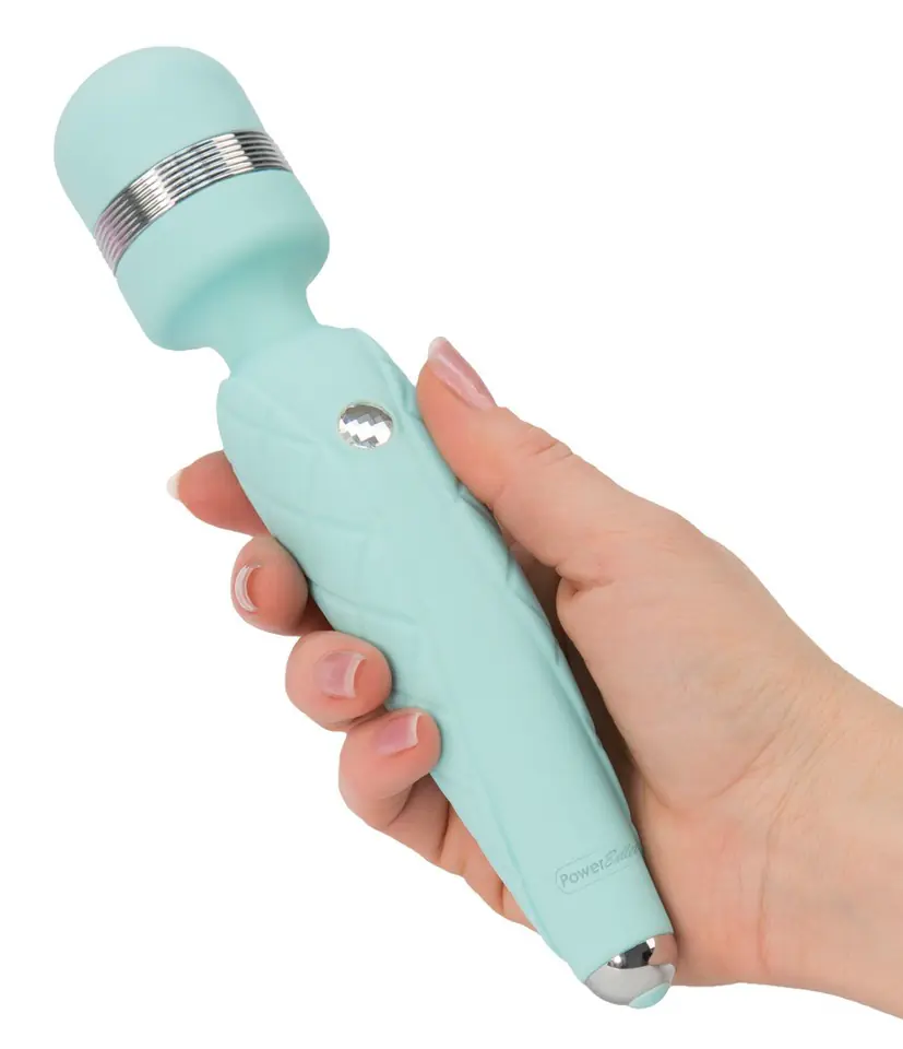 "Cheeky" invites to pillow talk!Pink, rechargeable vibrating wand with flexible massage head for targeted pleasure point or full-body massages. Extra strong motor for multi-speed vibration. With travel lock. Elegant detail: Sparkling Swarovski® stone as control button. Total length 20 cm, Ø 3.9 cm. Silicone, ABS. USB charging cable included.