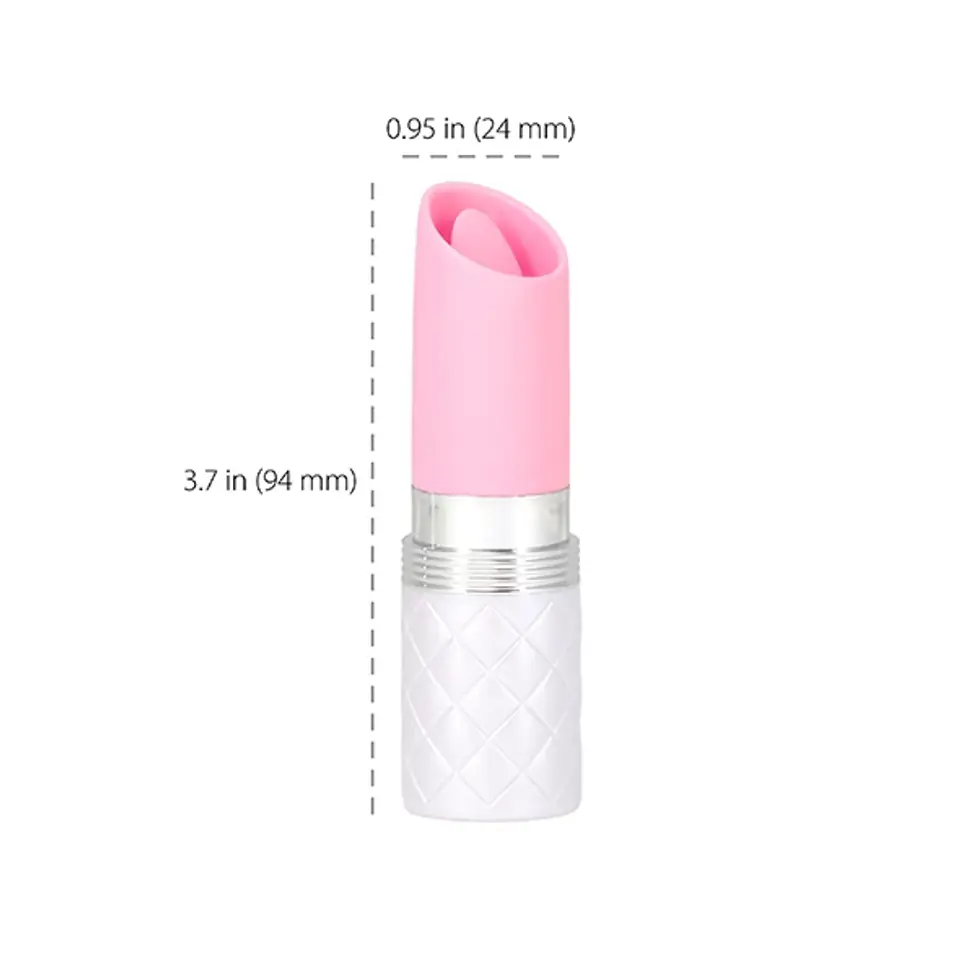 A discreet lipstick design for a handbag! The mini vibrator Lusty from Pillow Talk is in a beautiful design and looks like a real lipstick – with or without its lid. It also has a Swarovski stone as well. There is a fluttering tongue that vibrates inside the open tip. The tongue is perfect for spot-on pleasure spot stimulation e.g. on the clitoris, nipples, testicles, perineum etc. The multi-speed vibrations can be easily adjusted at the push of a button. Rechargeable – includes a USB cable. Complete length 9.4 cm, 2.4 cm wide. Weight 38.5 g. ABS, silicone.