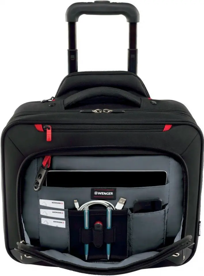 Perfect for the on-the-go commuter, this expandable rolling business case allows you to carry a laptop, tablet, documents and more with ease. Padded compartments protect up to a 16" / 41 cm laptop and an iPad, 10" / 25 cm tablet or eReader. Expands 2 / 5 cm when additional storage space is needed. Essentials organizer. Quik Pocket provides easy access to essentials. File divider separates and stores documents, folders and more. Pass-Thru trolley strap slides over the handle of wheeled luggage for easy travel. Comfort-grip telescoping trolley handle. Easy-glide wheels.