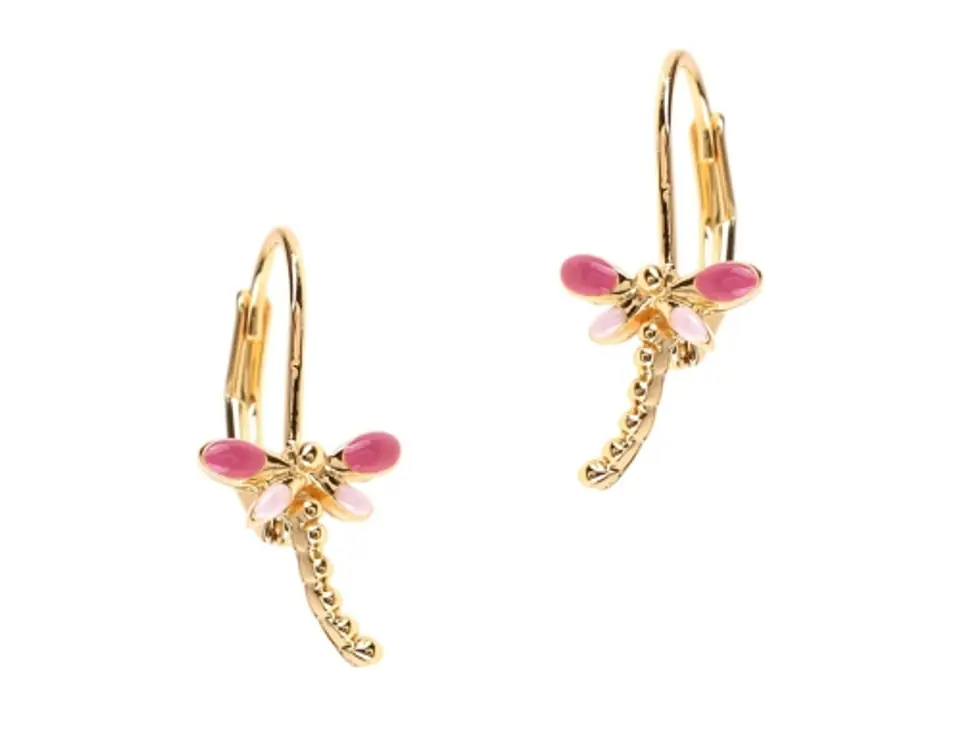 Cute dragonfly earrings with pink wings. A design that adds charm. Length 2.1cm, width 2cm. Gold-plated earrings with pink elements.