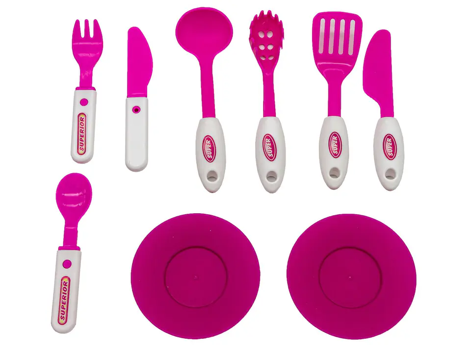 The kitchen set with oven contains almost everything that is necessary to prepare excellent meals and sweets.
