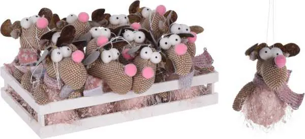 Pink reindeer with a hat and scarf Christmas decoration 8x15cm Extremely charming reindeer, which look beautiful on the table, chest of drawers, shelf or Christmas tree. Beautiful fur reindeer will add a festive atmosphere to any interior. Specifications: Dimensions: 8x15 cm, Material: plastic, Possibility of hanging on the Christmas tree: yes, Product sent randomly.