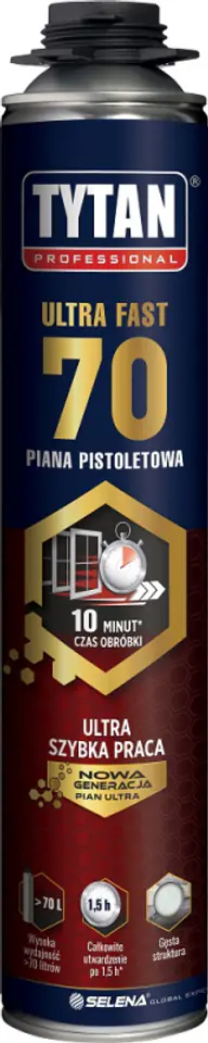 Tytan Professional ULTRA FAST 70 is a foam with accelerated curing time and reduced post expansion.