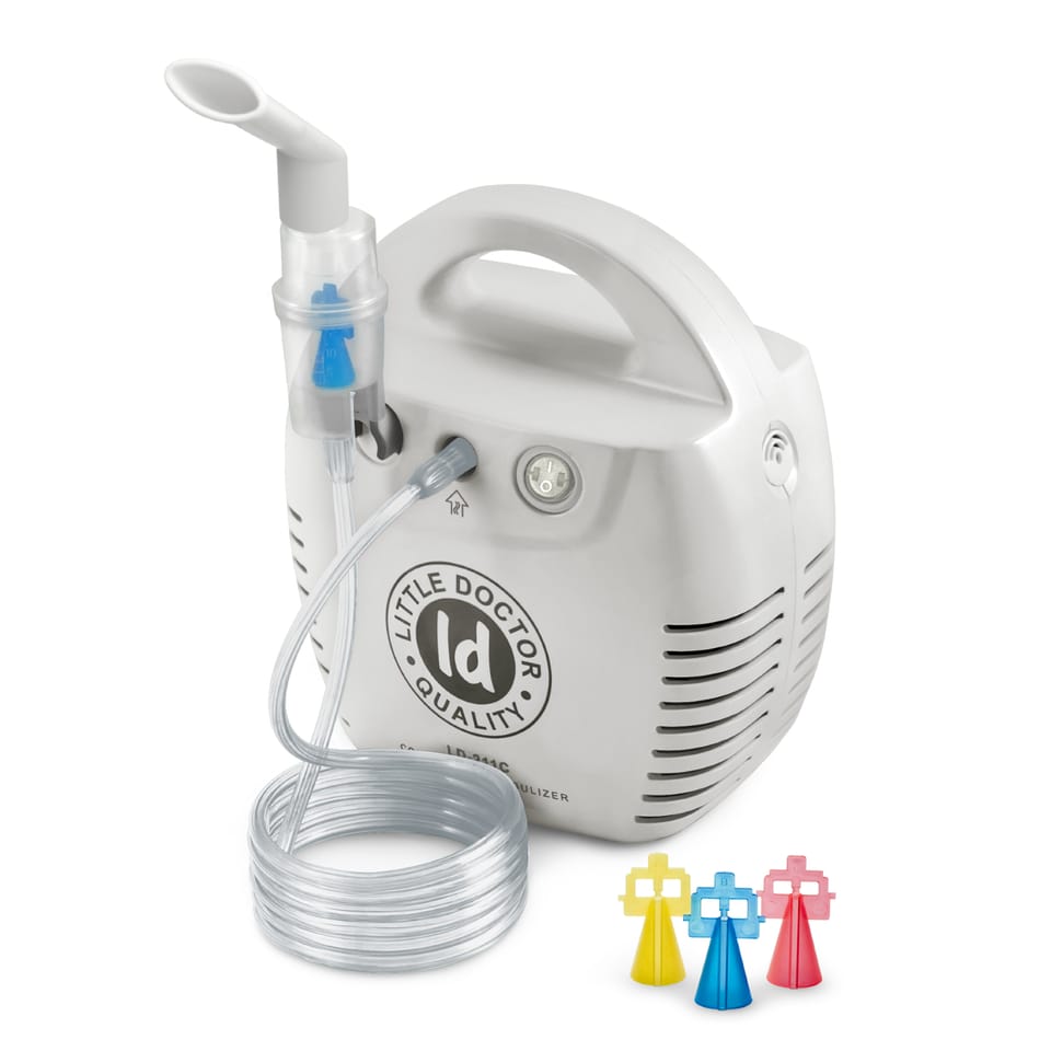 Compressor inhaler for children and adults, allowing the use of a wide range of inhalation preparations. Classic color version. Features:• Allows the use of a wide spectrum of drugs intended for inhalation.• Maximum effective use of medicinal preparations, thanks to the low final volume of the inhalation solution.• The standard set includes: mask for adults, mask for children, 2 mouthpieces, 2 caps for inhalation through the nose, air hose with a length of 2m, 5 replaceable air filters.• 3 sprayers included.• Low noise.