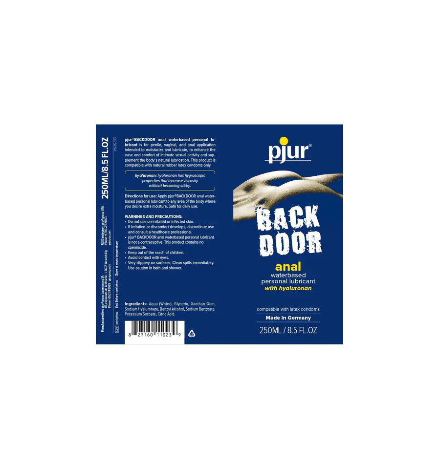The water-based lubricant with a comfortable lubricating effect, especially for hard anal sex. The addition of valuable hyaluronic acid featuring moisturizing properties forms small water cushions to support the lubricating effect. pjur Back Door Comfort Water Anal Glide is taste- and odorless, condom-safe, and is characterised by an exceptionally long lasting lubricating effect without getting sticky. 250 ml