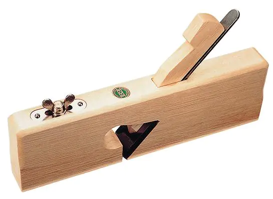 Made of: white beech wood, varnished, with a movable foot and a ready-to-use planer knife. With a blade angle of 50°.