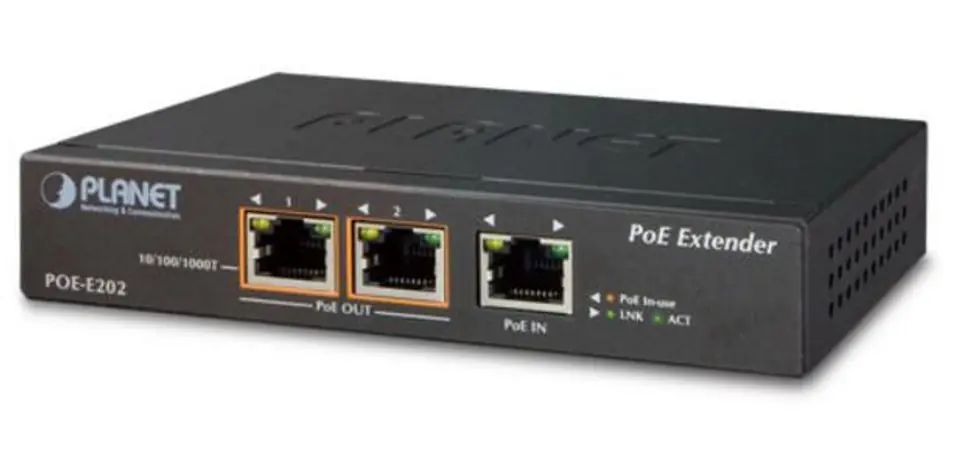 PLANET POE-E202 network extender Network transmitter & receiver Black 10, 100, 1000 Mbit/s