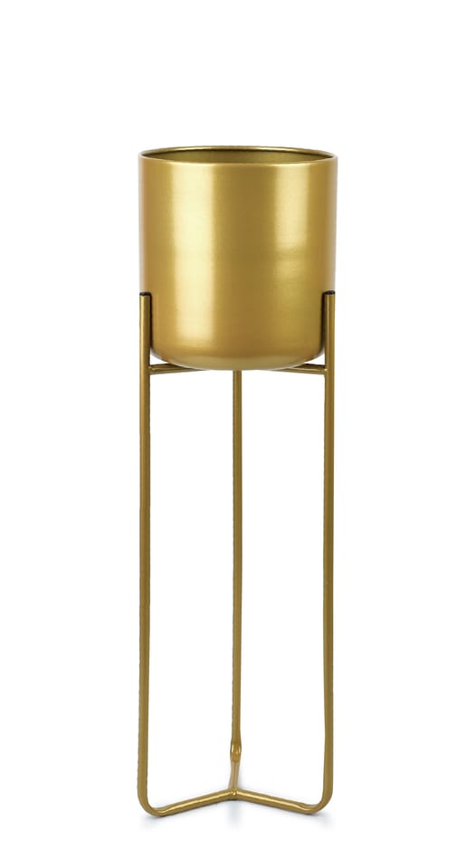 Minimalist design, modern form, impressive colors – and all this is contained in one flowerbed, thanks to which your room will gain an amazing character. It will work well at home, office, restaurant and even on the terrace. Succulents, soaring compositions or flowers with hanging stems – this flowerbed will expose any type of vegetation. The whole is made of metal powder coated in gold. Height of plant pot: 19 cmHeight of the frame itself: 54 cm