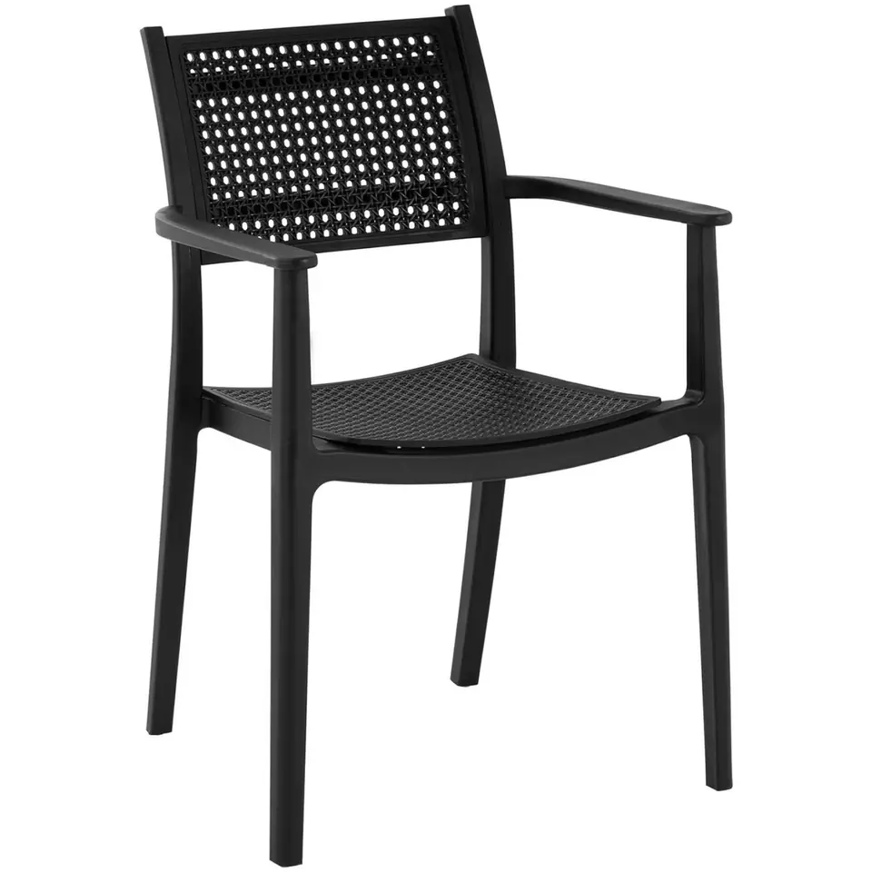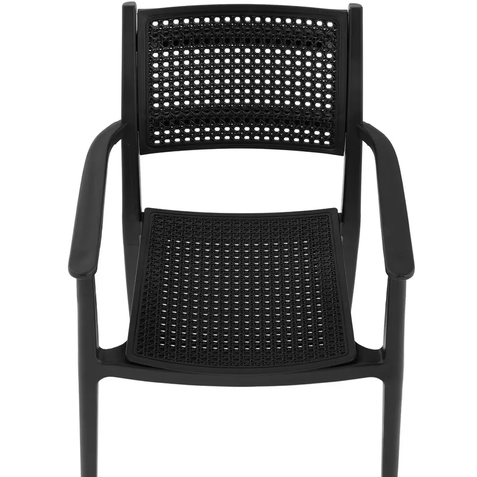 The chairs are made of durable plastic. The seats are very comfortable. The black openwork backrest provides good air circulation, especially in the summer heat. The chair can withstand a load of up to 150 kg and does not creak even at maximum load. The polypropylene material used is very durable and also easy to care for.