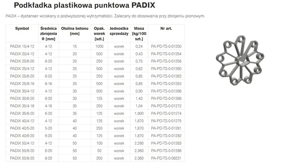 The PADIX plastic spot pad is a push-in spacer