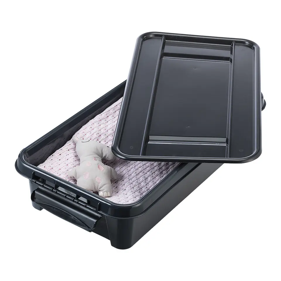 The capacity of the boxes ranges from 14 to 70 litres, making the Pro Box RECYCLE suitable for a variety of storage needs. All boxes can be stacked, which allows optimal use of storage space, and recesses and furrows in the lid prevent them from being moved when stacking on top of each other.