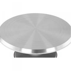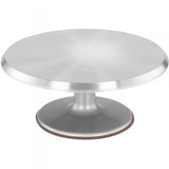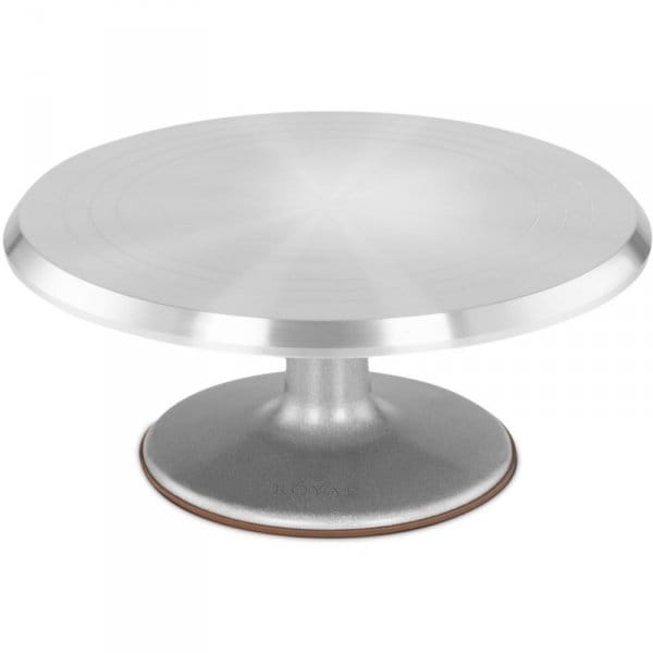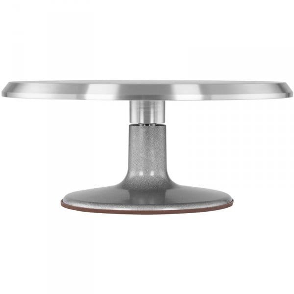The construction of the plate is made of strong and elegant aluminum. 13 cm height makes it easy to cut, frosting and decorating. The base of the plate has a non-slip silicone bottom ,