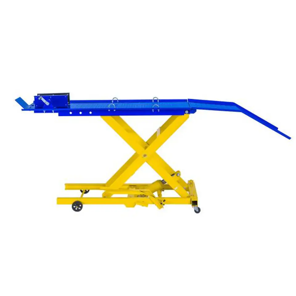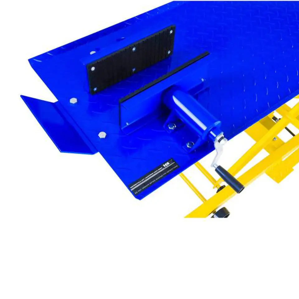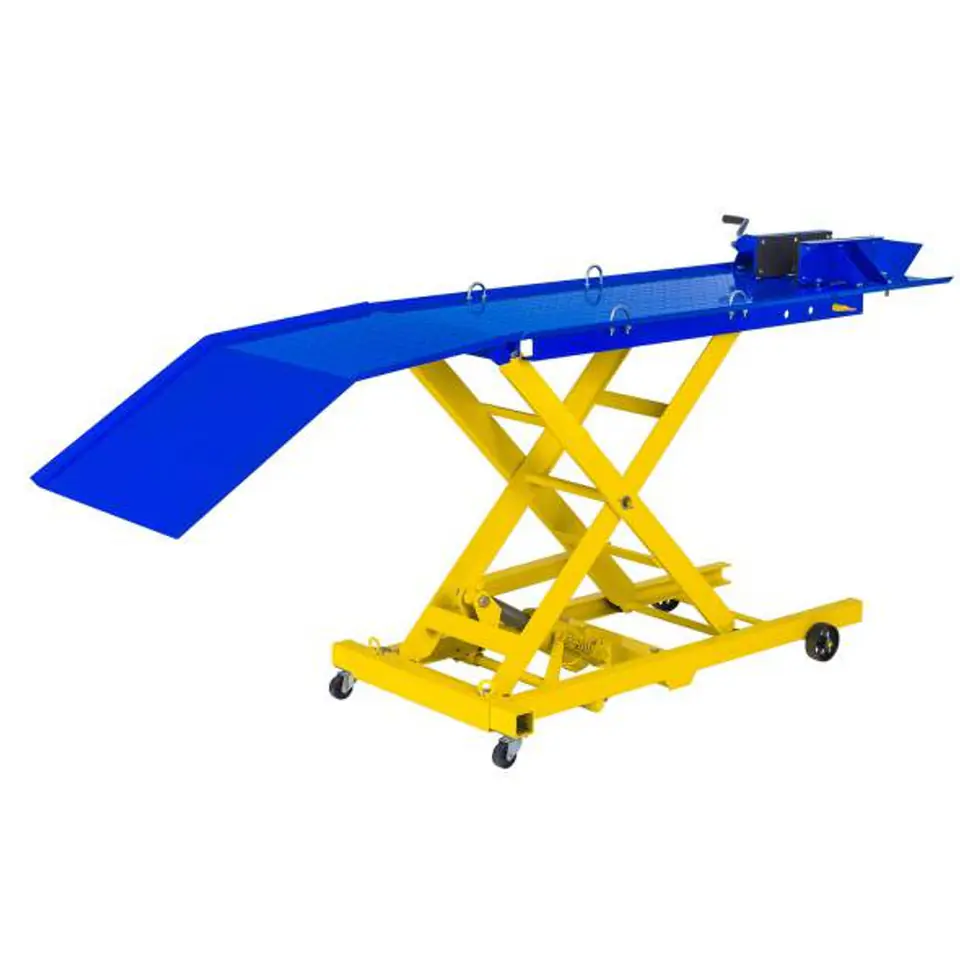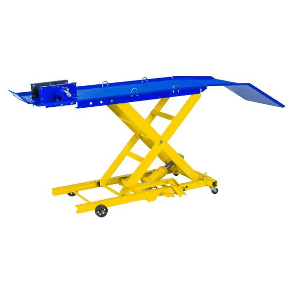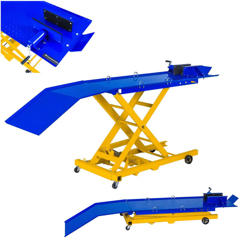 The MSW motorcycle lift is designed for use in professional motorcycle services, repair plants and workshops. He will also find himself in the garage of a two-wheeler enthusiast. It is designed to lift (in the range from 210 to 780 mm) and support motorcycles with a total weight of up to 360 kg. A vice for the front wheel and 4 buckles are used to immobilize the repaired equipment. The MSW-MHB-360-780 elevator has 4 wheels for mobility, rollover and is equipped with a mechanism thanks to which the lift is lowered in a smooth manner.
