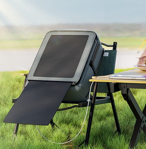 Backpack with Solar Panel – the Perfect Companion for Every Adventure! A modern backpack equipped with an efficient solar panel, making it indispensable for hiking, camping, and outdoor activities. With the ability to charge mobile devices via USB-A and Type-C ports, you won’t have to worry about power access in the wild. Made from durable Oxford 210T fabric and nylon, the backpack withstands tough weather conditions – its IPX4 waterproof rating protects your belongings even in the rain. Its 20–35L capacity and multiple compartments make it easy to store all your essentials. The integrated 30W solar panel charges via sunlight and allows you to power your devices without needing an outlet. It’s a perfect solution for outdoor enthusiasts who value independence and functionality. The lightweight design (1.46 kg) and ergonomic shape ensure all-day carrying comfort. Backpack technical specifications:Backpack dimensions: 44 x 32 x 17 cmCapacity: 20–35 litersWeight: 1.46 kgPower: max 30WOuter material: Oxford 210T fabricLining: NylonSeasonality: All-seasonCharging ports: USB-A, Type-CWaterproof rating: IPX4 Charging capabilities: USB-A: up to 22.5W (5V/4.5A, 5V/3A, 9V/2A)Type-C: up to 15W (5V/3A) PTOSB30W is more than just a backpack – it’s a mobile power source that gives you freedom on every adventure. Perfect for survival enthusiasts, travelers, students, and professionals on the go!