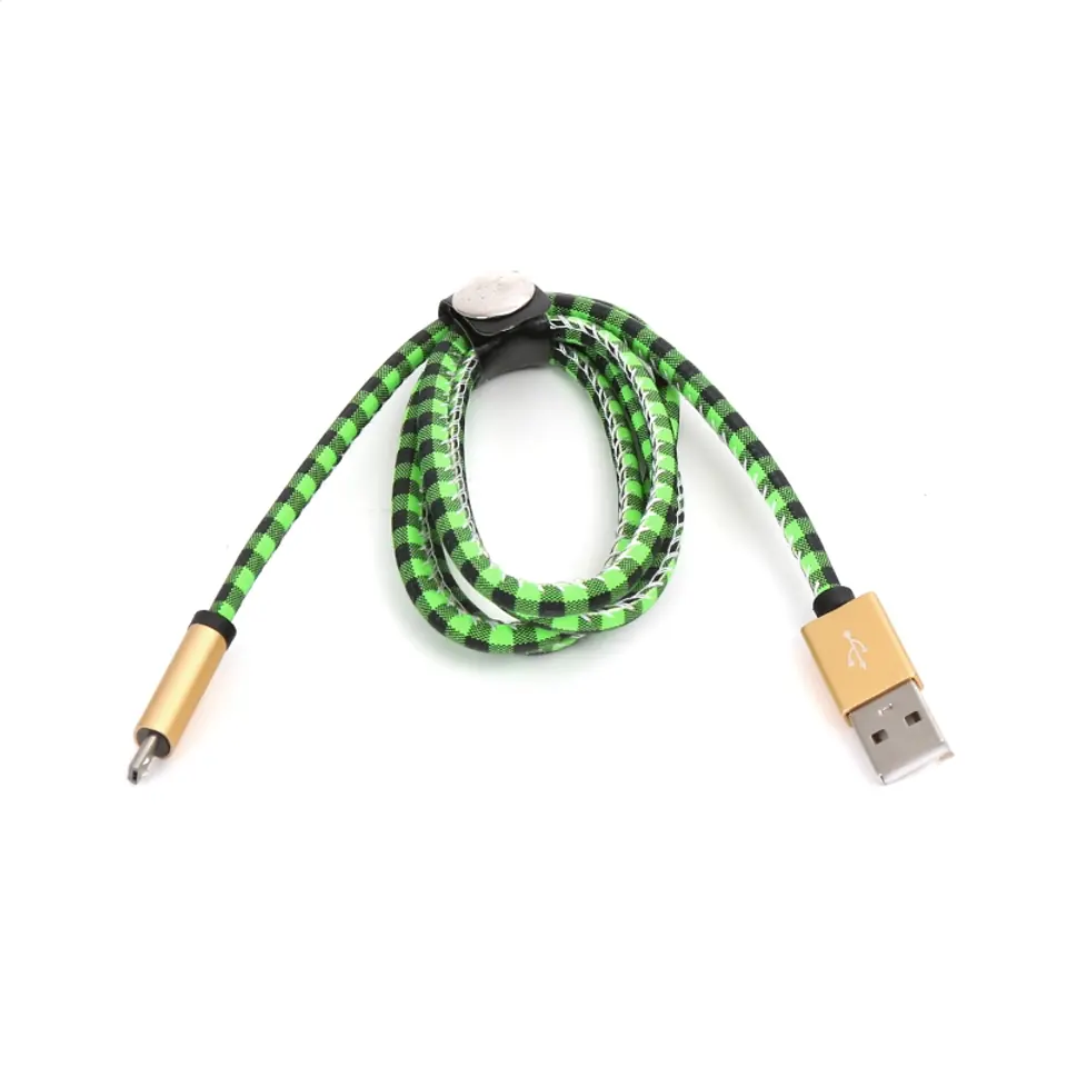 PLATINET MICRO USB TO USB LEATHER CHECKED CABLE 1M GREEN