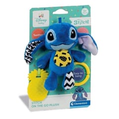 A soft plush Stitch that you can always carry with you! Bright colours and strong contrasts, soft fabrics, squeaking and rustling elements stimulate the development of senses and manual skills. With a pineapple to chew, a practical ring suitable for teething to hang anywhere.