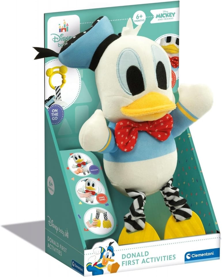 Donald Duck in the form of a cuddly teddy bear with features designed for the youngest users, full of colours to stimulate curiosity and perceptiveness.