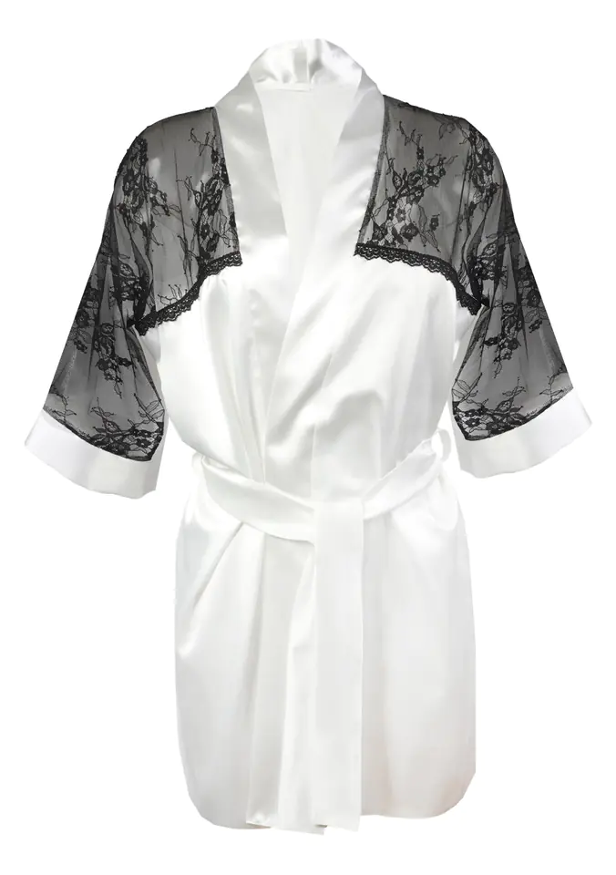 ELEGANCKI SATYNOWY SZLAFROK. PRZÓD PODOMKI OZDOBIONY DELIKATNĄ KORONKĄ, KTÓRA W CAŁOŚCI DODAJE UROKU I ZMYSŁOWOŚCI. PRZEPLATANY PASKIEM SATYNOWYM, KTÓRY IDEALNIE DOPASOWUJE SIĘ DO SYLWETKI, UWYDATNIAJĄC ATUTY KOBIECEGO CIAŁA. WERSJA KOLORYSTYCZNA: WSZYSTKIE WERSJE KOLORYSTYCZNE (CZARNA KORONKA).