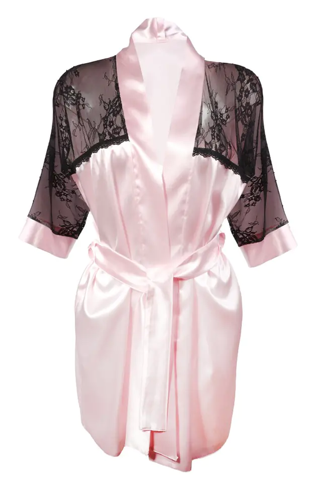 ELEGANCKI SATYNOWY SZLAFROK. PRZÓD PODOMKI OZDOBIONY DELIKATNĄ KORONKĄ, KTÓRA W CAŁOŚCI DODAJE UROKU I ZMYSŁOWOŚCI. PRZEPLATANY PASKIEM SATYNOWYM, KTÓRY IDEALNIE DOPASOWUJE SIĘ DO SYLWETKI, UWYDATNIAJĄC ATUTY KOBIECEGO CIAŁA. WERSJA KOLORYSTYCZNA: WSZYSTKIE WERSJE KOLORYSTYCZNE (CZARNA KORONKA).
