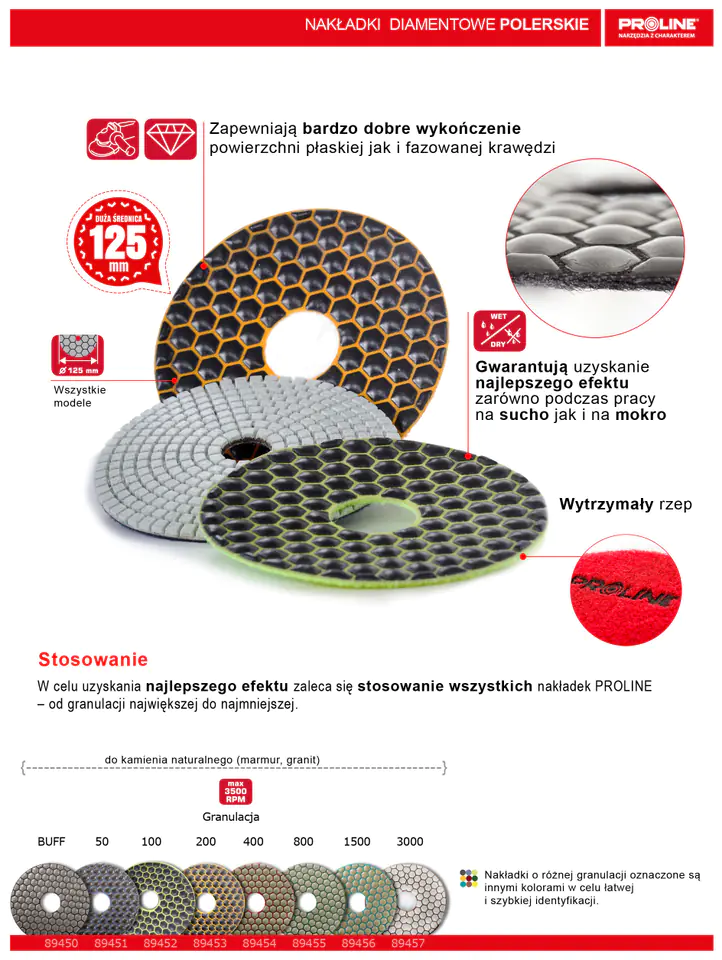 POLISH. DIAMOND PAD, GR.800, 125MM, GRANITE/MARBLE, PROLINE