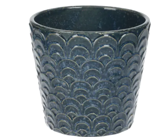 Ceramic pot in navy blue 17x17x15,8cm Porcelain casing pot, which looks great in both modern and classic interiors. Interesting embossed patterns make each of them look natural and eye-catching. This distinctive series will bring a lot of charm to any interior. Technical specs: Material: porcelain, Dimensions:17x17x15,8cm, Color:navy blue,