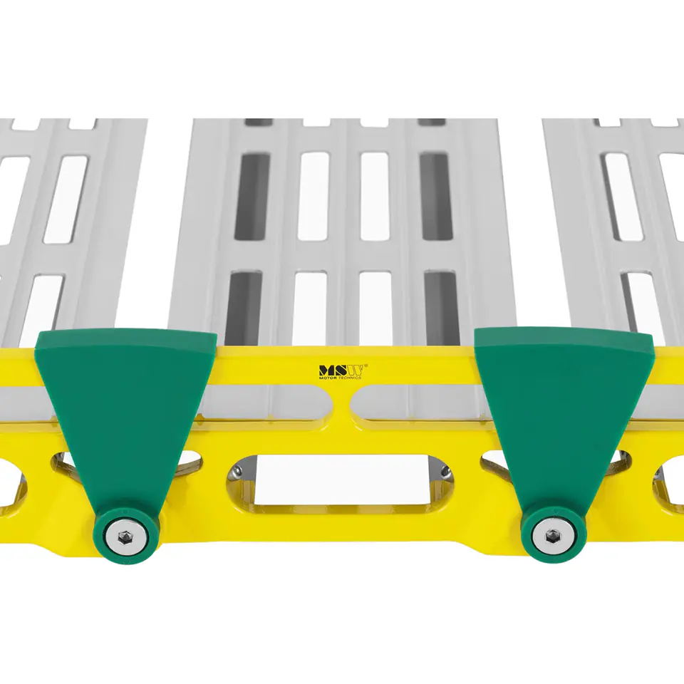 The MSW ramp will work well for entering higher levels in places where there are stairs for wheelchairs, walkers, mowers. scooters, quads, etc. The construction of the device is made of strong aluminum that can withstand up to 500 kg. Non-slip surface fits rubber wheels with a diameter of more than 20 cm. Hard wheels that can damage the road surface are not recommended. The foldable design and light weight allow you to use the ramp anywhere. Unfolded, it has dimensions of 1965 x 762 mm, and after rolling up the diameter. 535 mm x 762 mm.