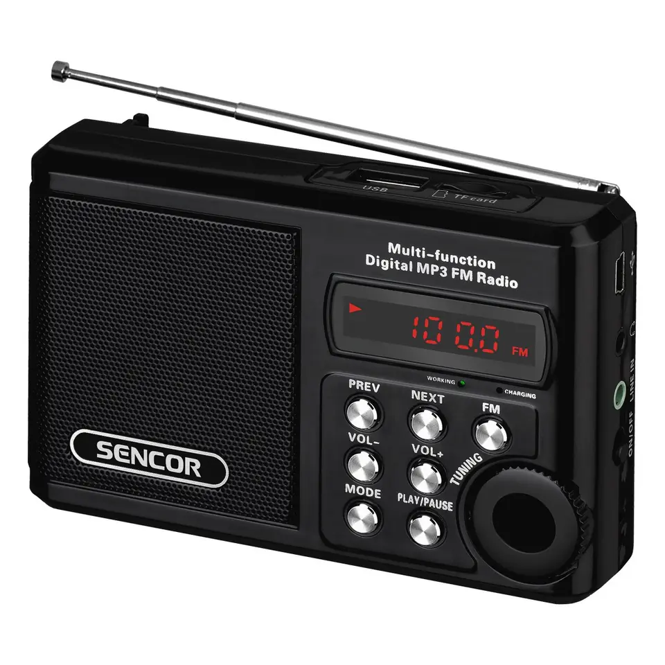- Analog FM radio with LED display