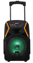 Device power 1600 W P.M.P.O. will provide a well-sound background music for people twirling while dancing. The device is equipped with an 8-inch woofer that allows you to enjoy the solid sound of low tones at any volume level. Whenever you want to prepare a party in which each guest will be able to demonstrate their vocal skills, the built-in karaoke function will help you, which will provide a lot of fun for both children and adults. The built-in 6.5 mm jack socket allows you to connect any microphone that has the same type of connector, if the wireless microphone included in the set turns out to be insufficient for two singing friends.