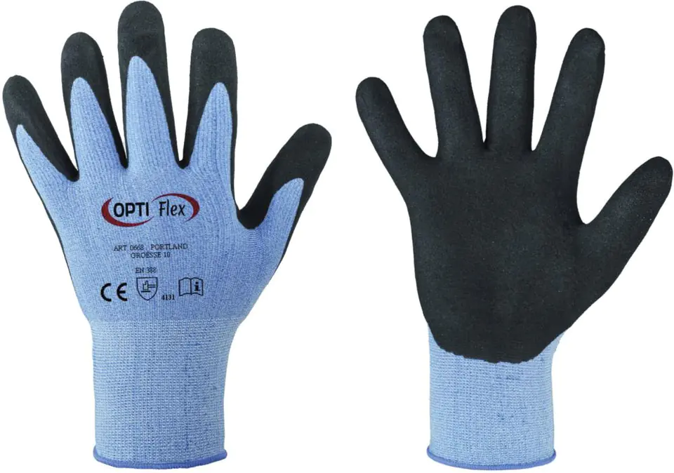 Material: Backing made of 90% polyester, 10% spandex (Lycra®), micro nitrile foam coating with water-based polyurethane