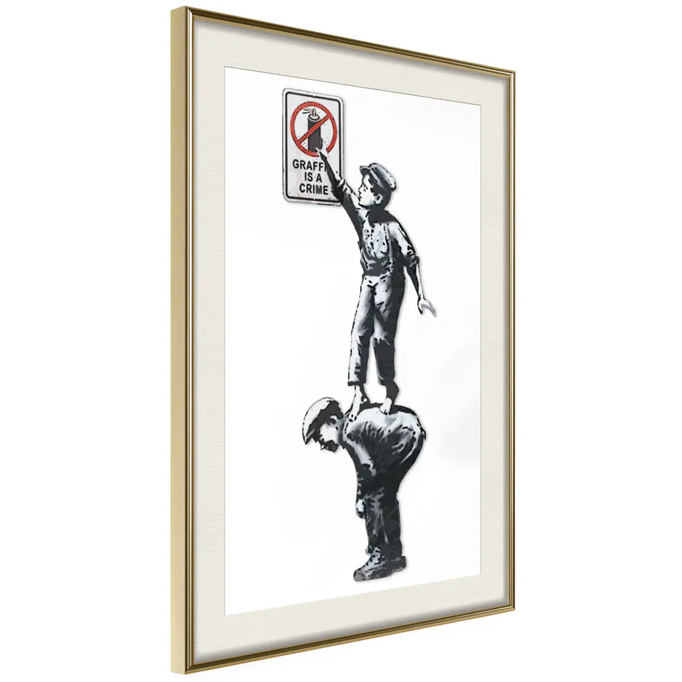 Poster - Banksy: Graffiti Is a Crime size 40x60, finish Gold frame with passe-partout