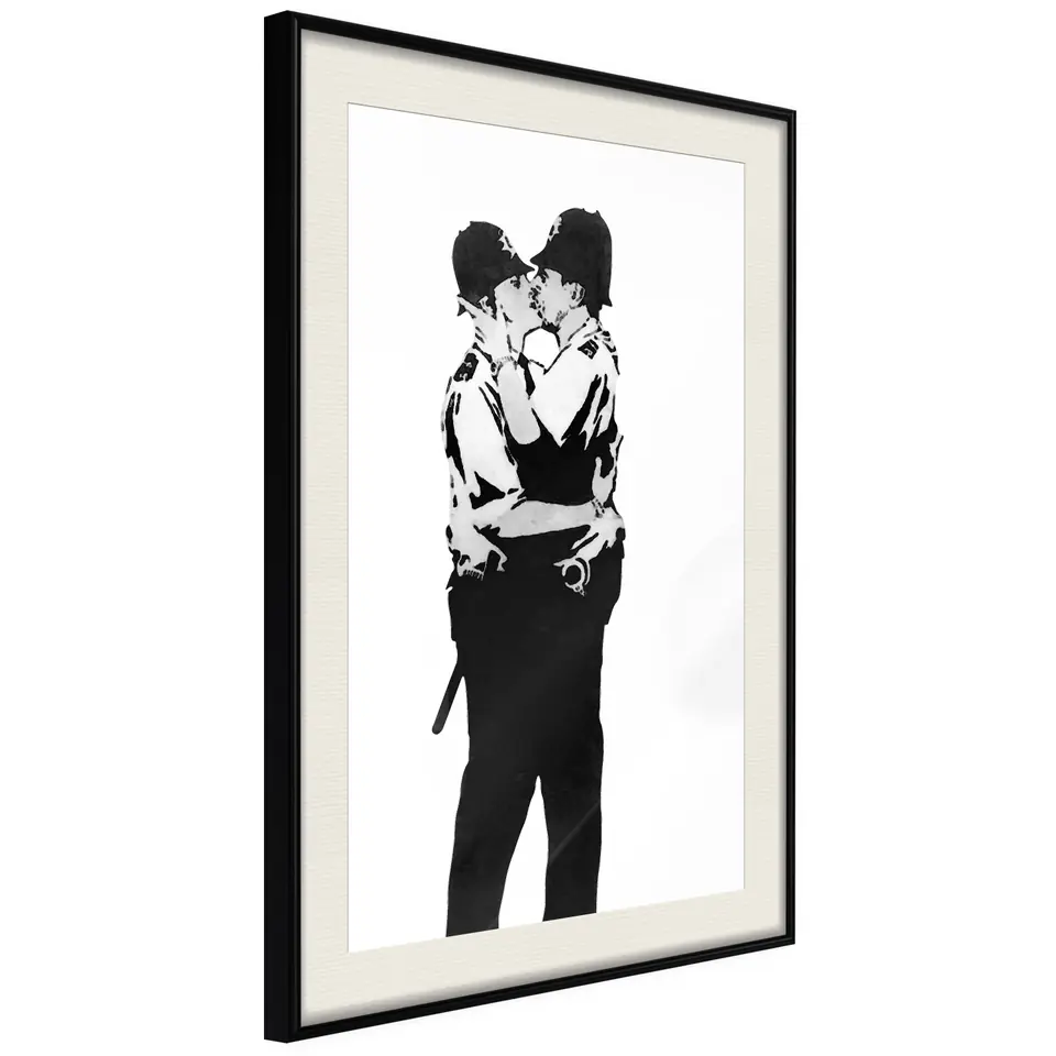Poster - Banksy: Kissing Coppers I size 20x30, finish Black frame with passe-partout