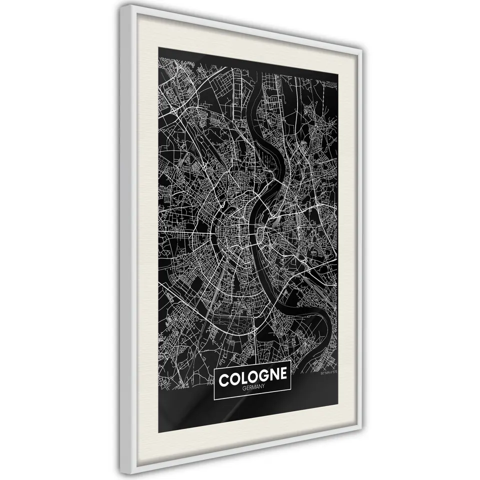 Poster - City map: Cologne (dark) size 20x30, finish White frame with passe-partout