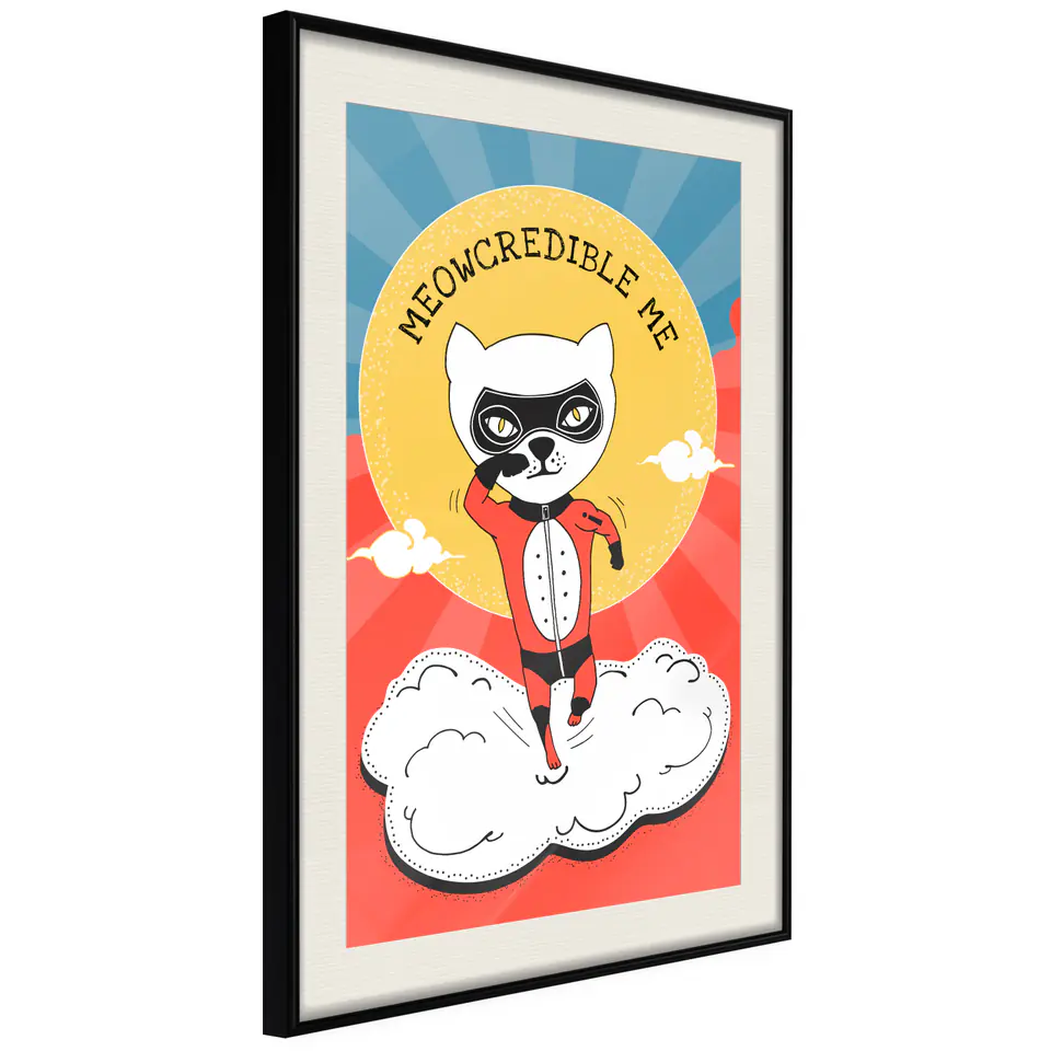 The poster is framed in a minimalist, light frame, exposing it against the background of the wall. The poster is protected with acrylic glass, a mounting hanger is attached to the back of the frame.