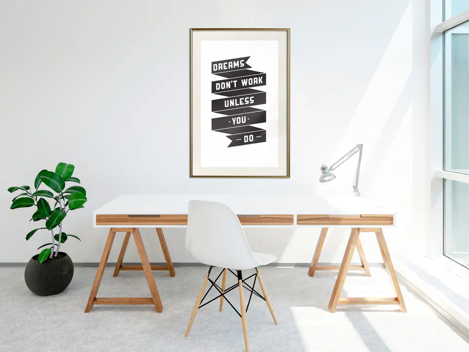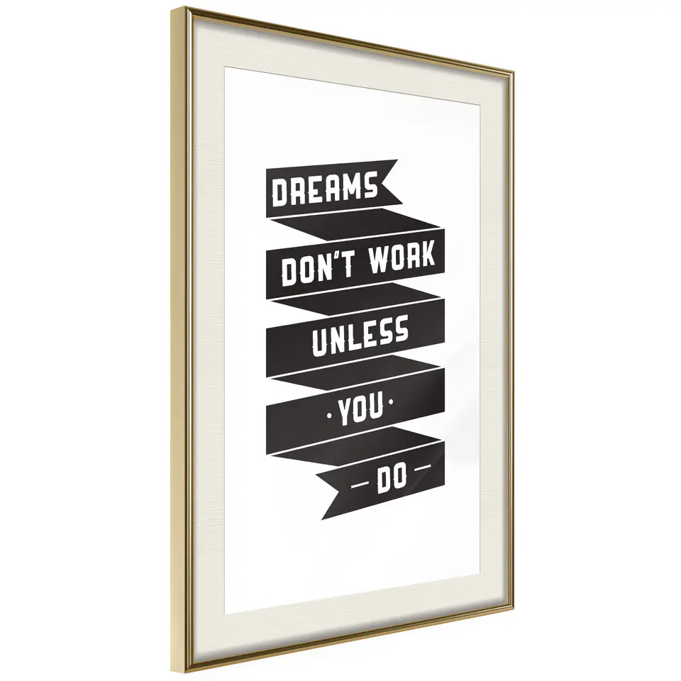 Poster - Dreams do not come true by themselves II size 40x60, finish Gold frame with passe-partout