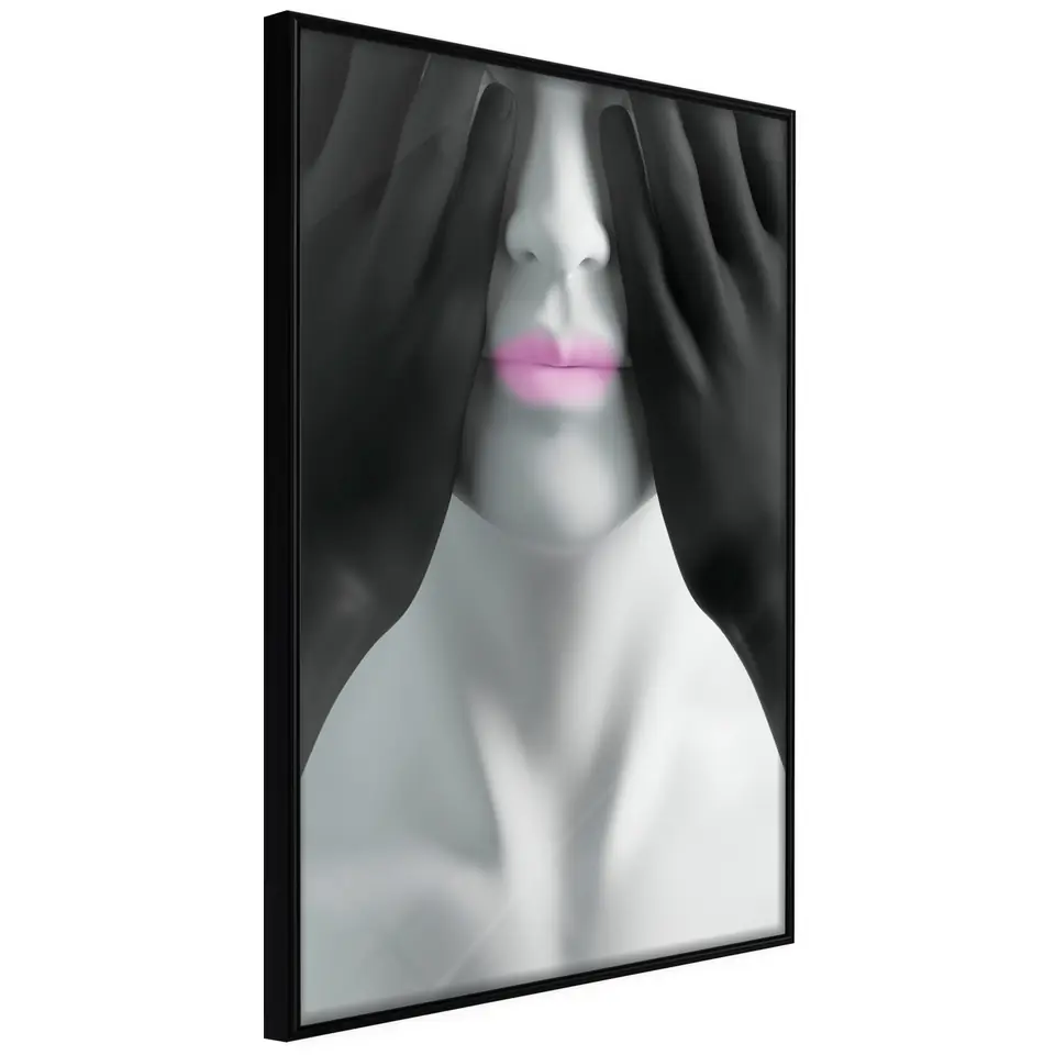 The poster is framed in a minimalist, light frame, exposing it against the background of the wall. The poster is protected with acrylic glass, a mounting hanger is attached to the back of the frame.