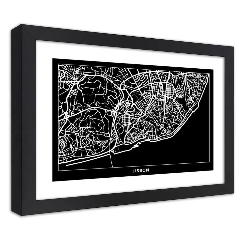 Poster in black frame, City plan lisbon Size 45x30