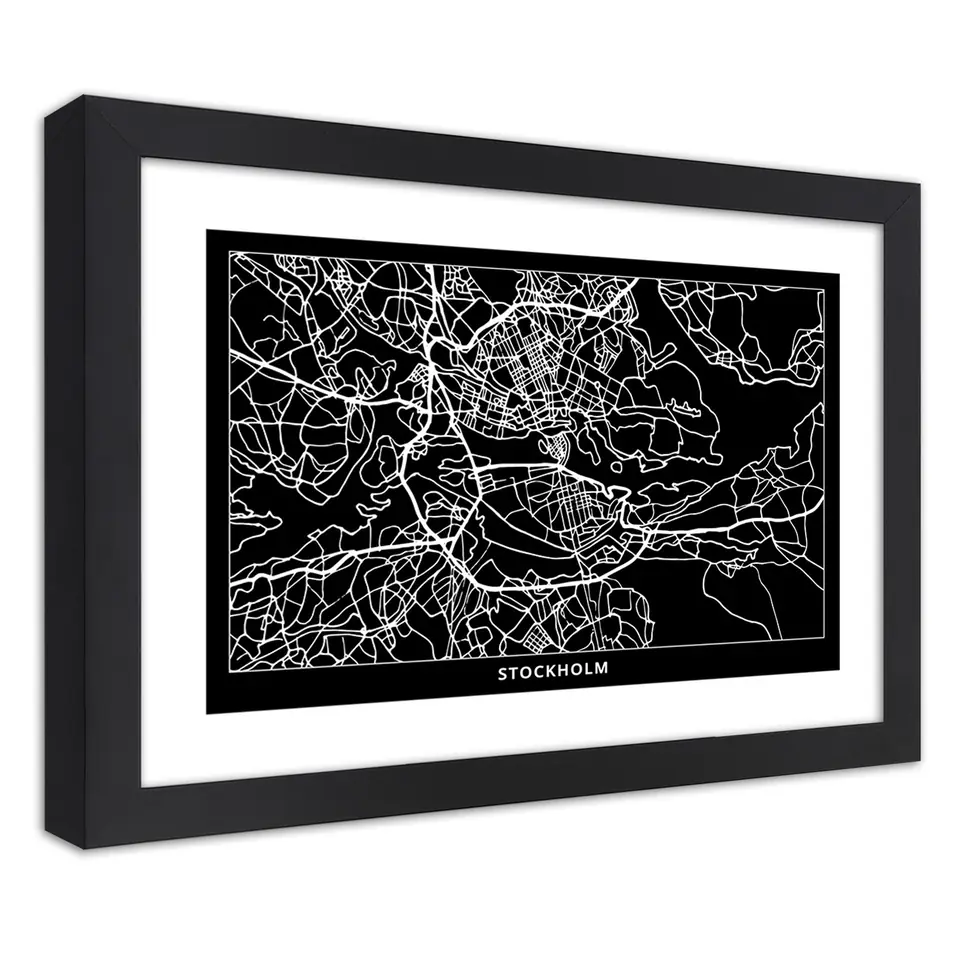Poster in black frame, City plan Stockholm Size 45x30