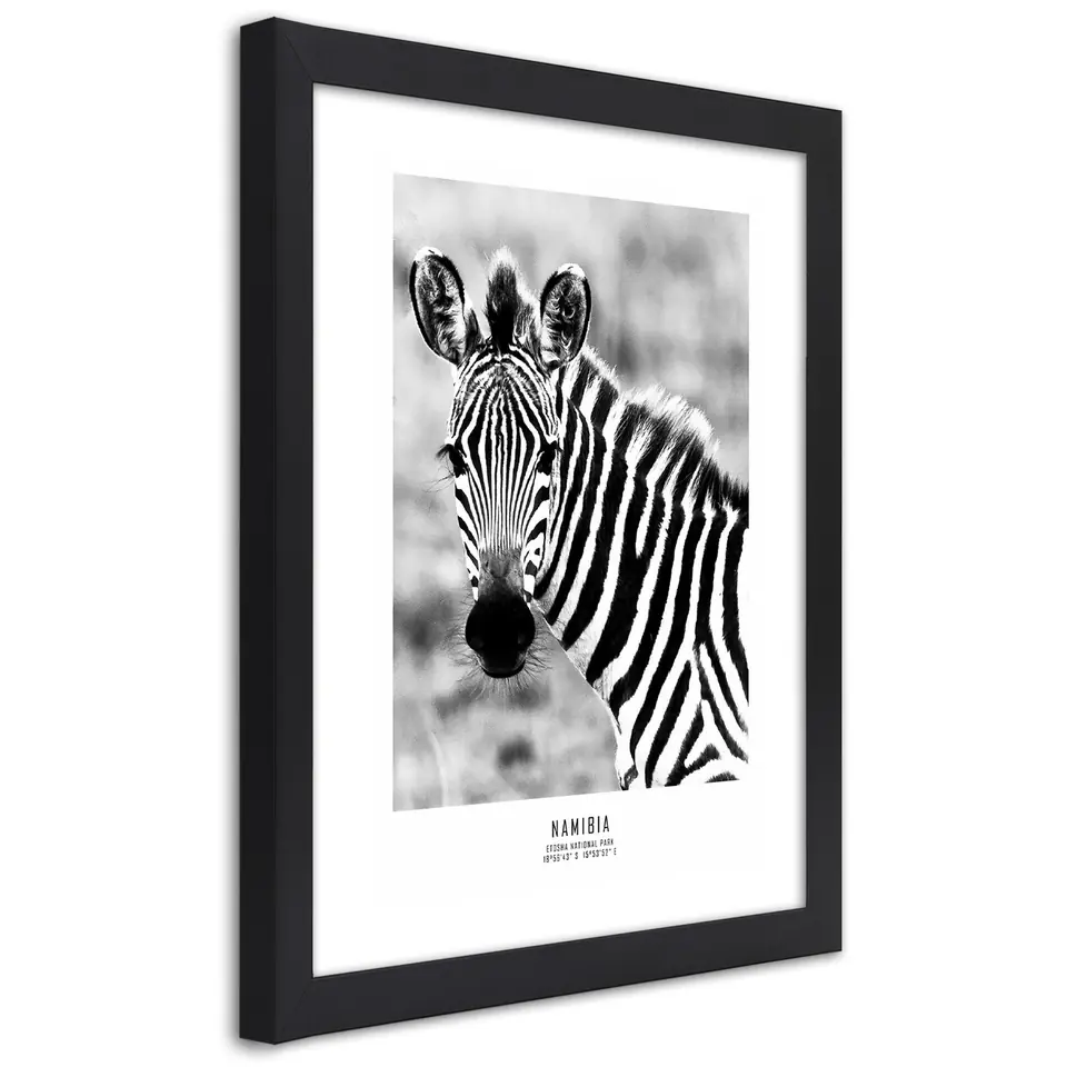 Poster in black frame, Curious zebra Size 60x90