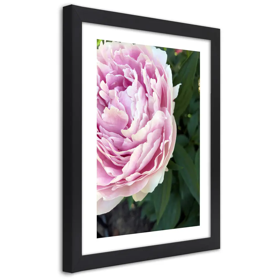 Poster in black frame, Cute pink peony Size 40x60